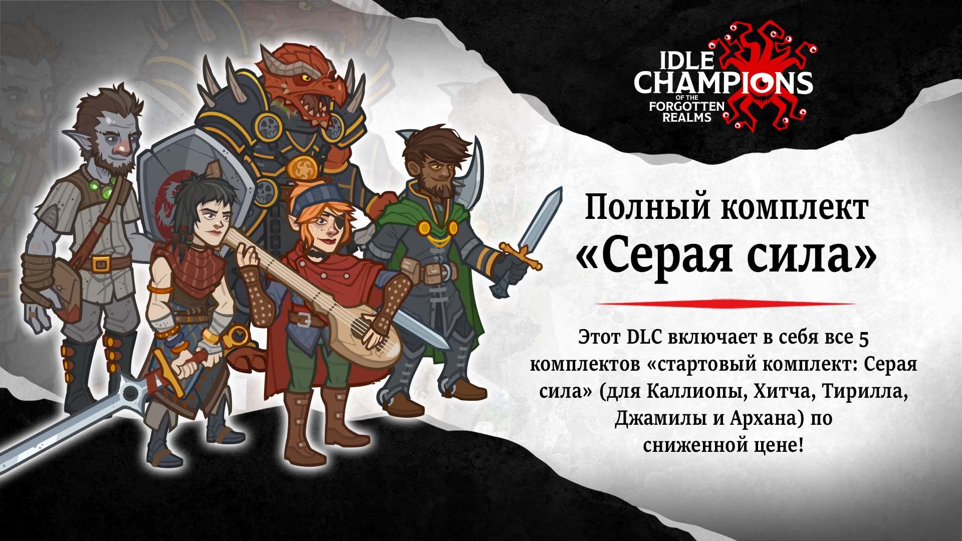 Купите ВСЕ комплекты «Серая сила», включая все золотое эпическое снаряжение для всех пяти чемпионов! И 50 Платиновые сундуки воителя в придачу!