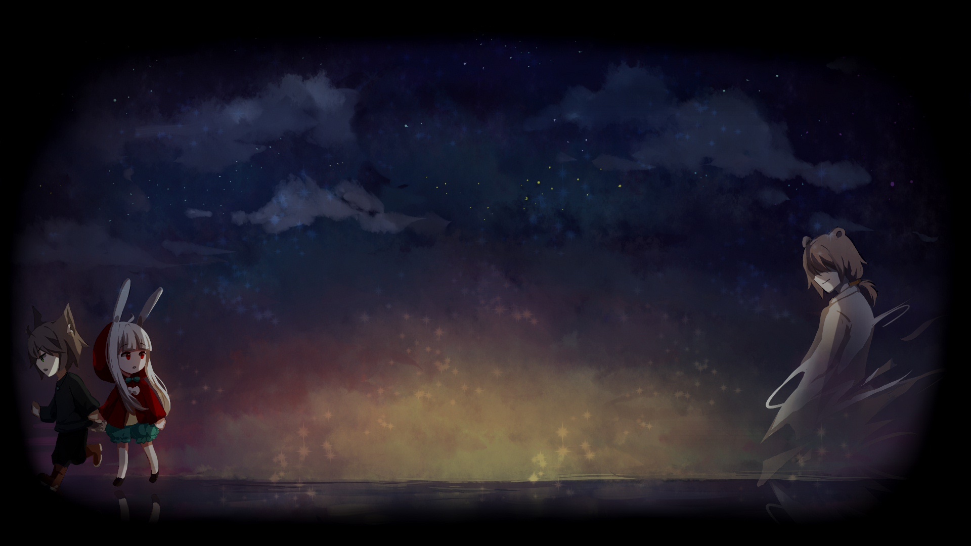 Our hero, an injured wolf boy, encountered a rabbit in red picking up flowers on his way escaping from a forest. The kind rabbit girl invited the wolf boy to her grandma's house for a treatment, yet... Standing in front of the house, the wolf boy felt... somehow, uneasy.