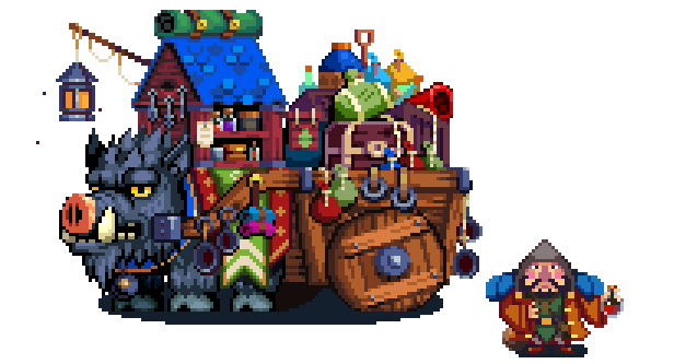 • Buy strange artifacts from the mysterious Mr Fairweather - items which can aid your chores, help you in combat, or just let you mess with the world. But be warned of his life tax, for each item must be paid with years from your life!