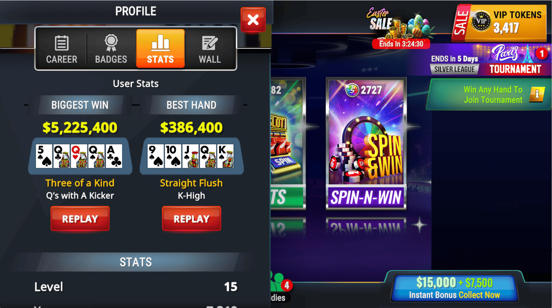 Spin & Win Mini-Games: Test your luck and win chips with an exciting casino designed for Poker enthusiasts.