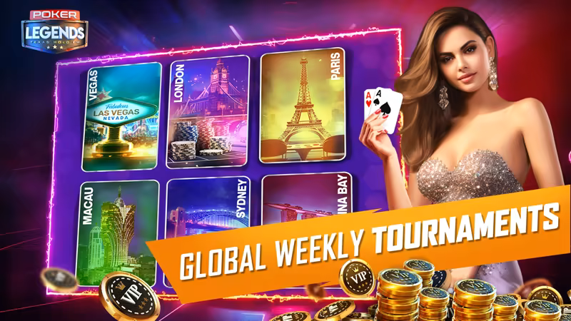 Poker Legends is a free-to-play multiplayer Texas Hold’em game where you bluff, bet, and strategize against real players. Compete in tournaments, complete challenges, unlock rewards, climb global leaderboards, and prove you’re the ultimate poker champion.