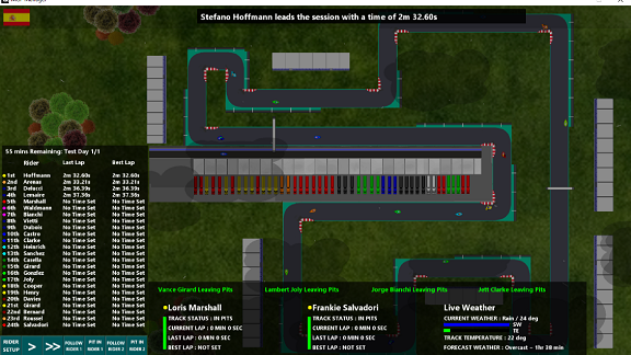 > 赛道演变 - 在赛事开始时,赛道需要时间“磨合”,以便骑手设定自己的最佳时间。即使赛道干燥后,雨水也会降低赛道抓地力,因此需要对其进行监控,以确保您的车手在正确的时间进入赛道。