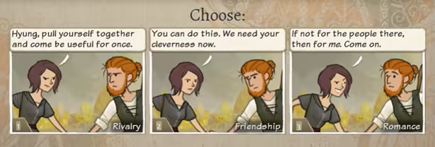 Your hero may choose to trust the enigmatic wolf god, leading to a hair-raising change in their appearance and combat abilities. Or they may pursue a romance with a fellow hero, giving each of them a shared buff and more story opportunities. Encounters and events have permanent, character-defining effects, letting you craft the arc of each character.