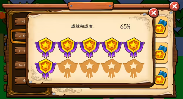 6.按下游戏主菜单的"成就战绩"按钮即可看到每个成就的要求、分值和完成情况,点击“全局成就”即可看到成就完成率。