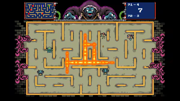 Mazard Deluxe – Two space men trapped in the maze of the space wizard. You battle aliens who can turn invisible. Thankfully you have a radar to tell you where they are. Don’t stand in place too long or Mazard will drop a flame bomb to flush you out. You can also revive a friend if he falls. (single player and co-op)