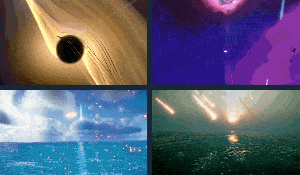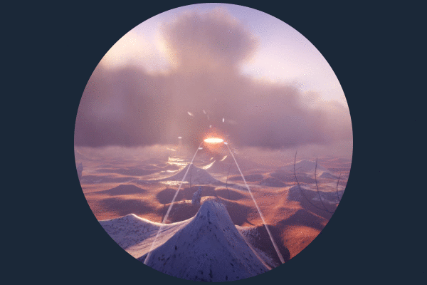 Ride thermal updrafts into boiling cloud formations, careen down hillsides and launch off mountain tops, all the time drifting toward the shining blue beam on the horizon. Atmospheric, diffused visuals are merged with otherworldly sound effects and a hypnotic electric guitar soundtrack.
