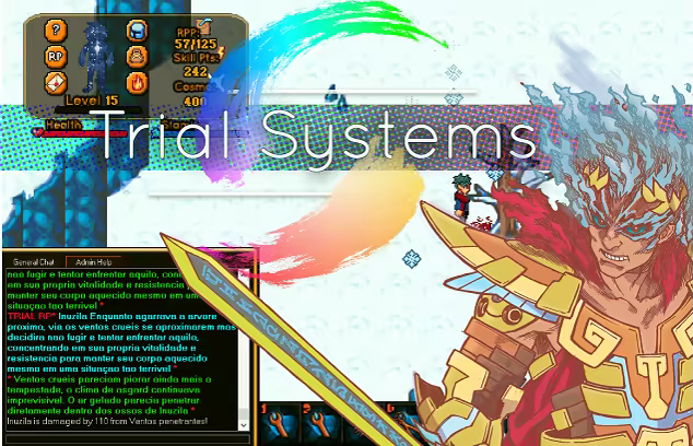 What differs the trial system from other MMORPG quests is that the trials are usually only completed once, with the main function of judging situations whose outcome can completely change the course of the game's history. And, as trials are made and things are going on in history, managers can always create new adventures or challenges that fit the previous results, ensuring the fluency promised by the style of the game focused on Roleplay, allowing the game experience to always be unique, since the adventure can not simply be repeated or undone.