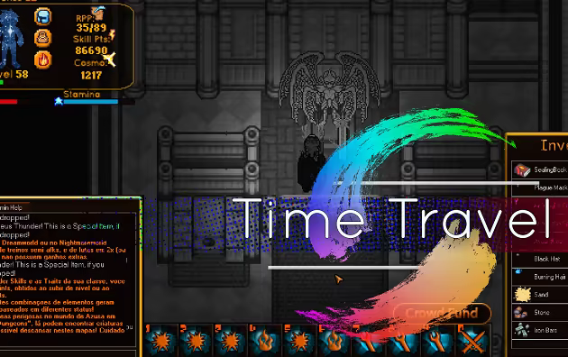With time travel, you can experience situations and events never seen before in other online games, such as going back to a point in the Azusa's base history and find canonical heroes, or even travel back in the distant past and find characters that one day were played by other people. These events can even be influenced or changed by the presence of travelers! However, time travels are very rare events that can affect the future on a grand scale, and when these drastic changes happen, global story is reviewed and a "Time Skip" can happen (Leaps in time of 80 years), sending all players in the actual present to their next generation, where the changes would be applied. It is worth mentioning that the time travel system is a complex mechanic, usually managed by one or more administrators, who, combined with the Roleplay system, allows almost infinite mutability in the development of game history.
