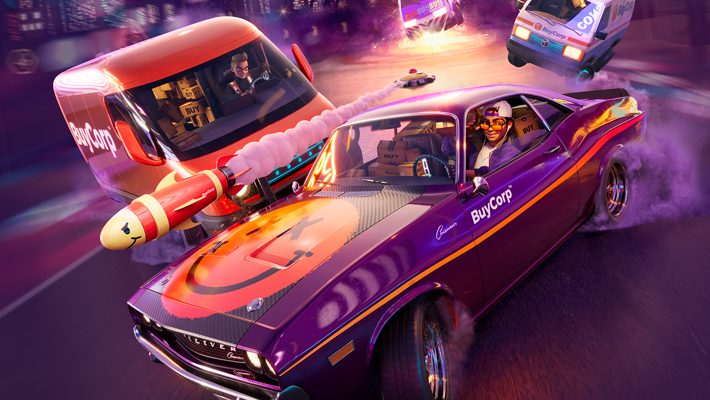 Win on the leaderboard and on the streets. Outstyle the competition with unique customisation options per character: vehicle skins, flashy wheels and boost trails. Earn new stuff by levelling up and taking part in BuyCorp challenges.
