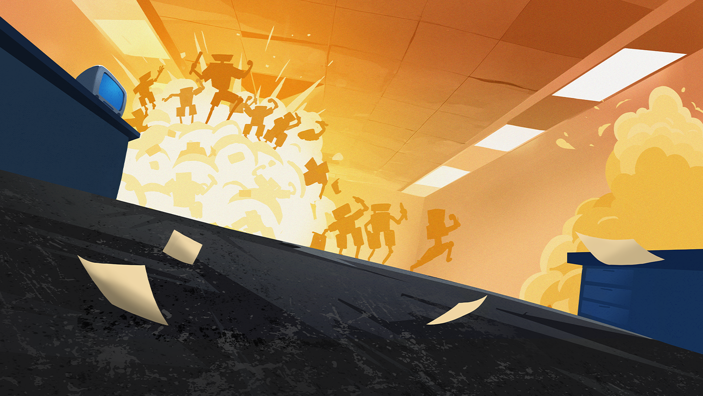 Shoot, hack and grind your way through waves of sentient office appliances (or your IRL colleagues) in this '00s- inspired, action packed roguelite arena shooter. It’s swarm bullethell – while 360 no scoping on an office chair