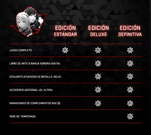 La edición definitiva incluye: juego, pase de temporada, libro de arte y banda sonora (digital), atuendos, un accesorio y complementos.