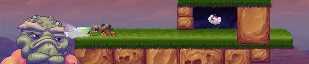 • Jump and dash your way across the backs of dragons on your way down to Earth in classic 2D side-scrolling action.