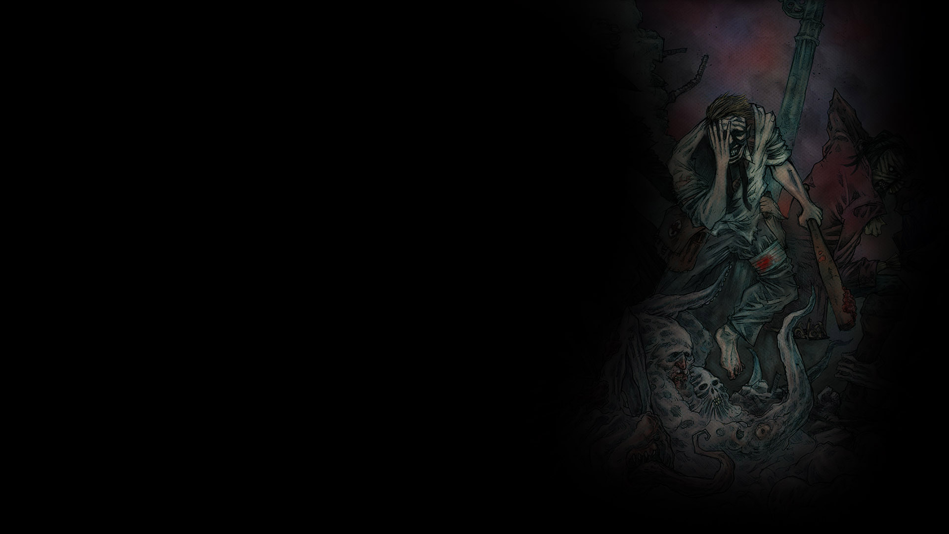 • A hand drawn 2D world reflecting Lovecraft's themes of cosmic horror and dread.