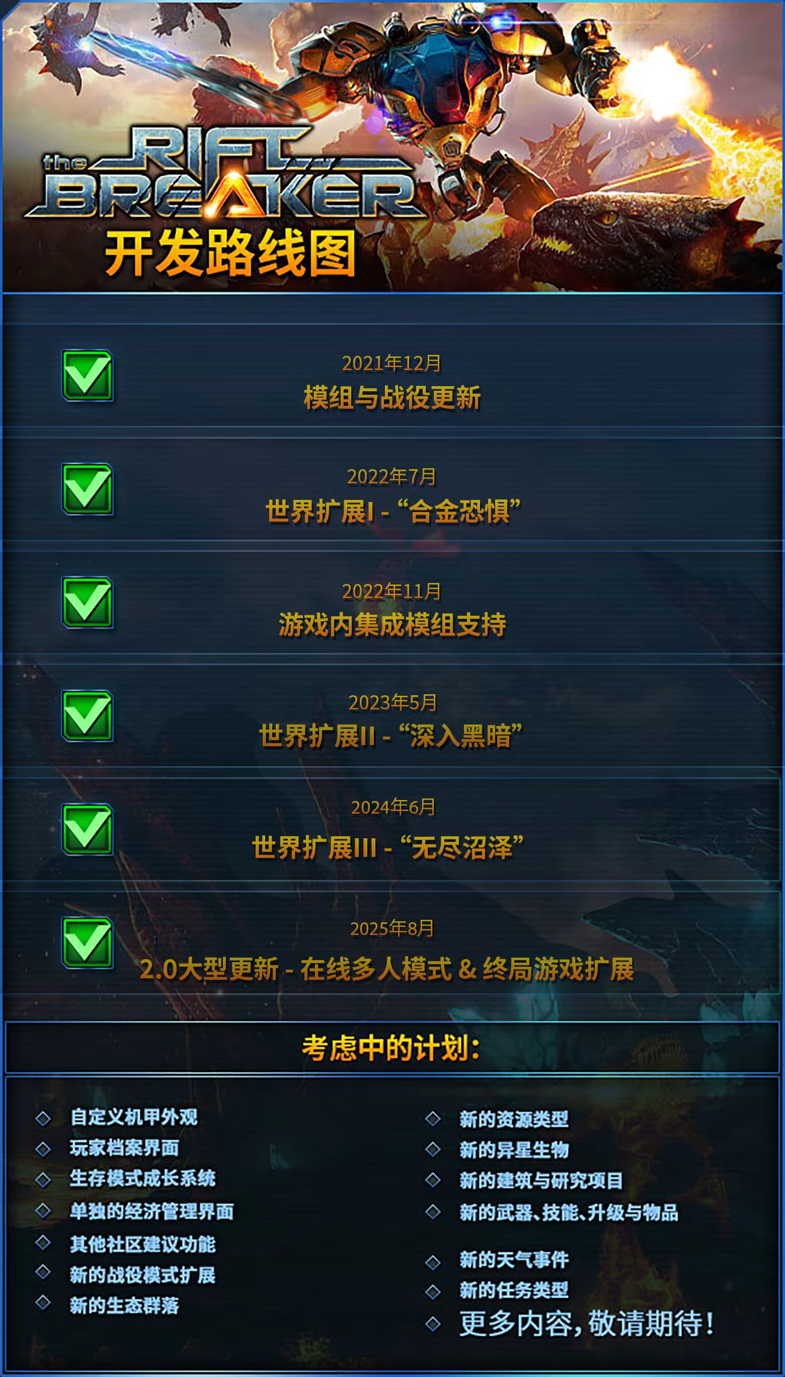 《银河破裂者》的开发始终得益于其热情的玩家社区。自游戏首次发布以来,它一直获得玩家的长期支持,并通过玩家的建议和直接贡献不断成长。游戏采用​​了高度开放的内容架构​​,配备​​内置模组开发工具集​​、​​Steam创意工坊专属集成支持​​以及​​便捷的模组管理器​​。