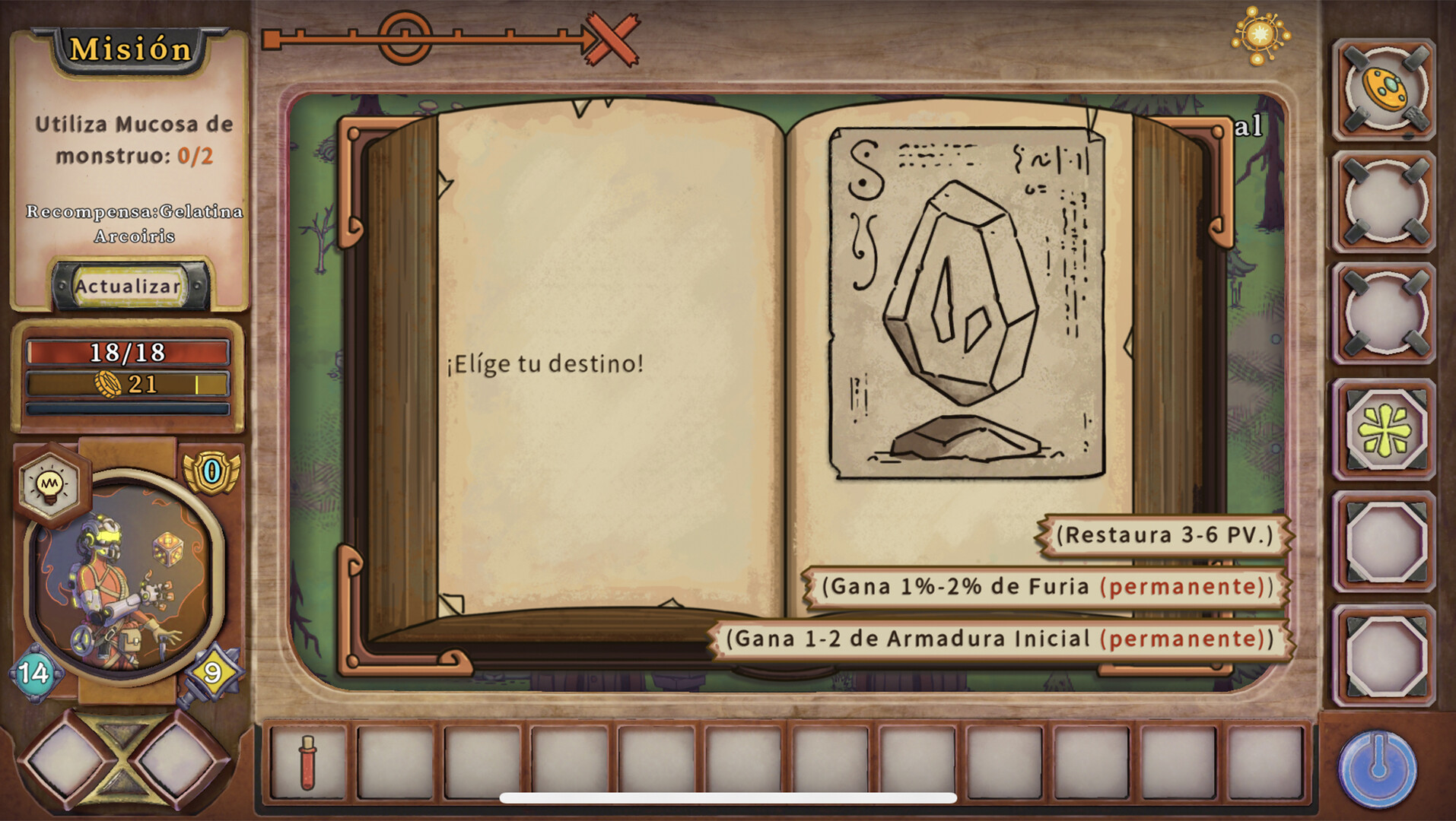 • Elige entre docenas de equipamiento, joyas y gemas para mejorar tus cartas y estadísticas.