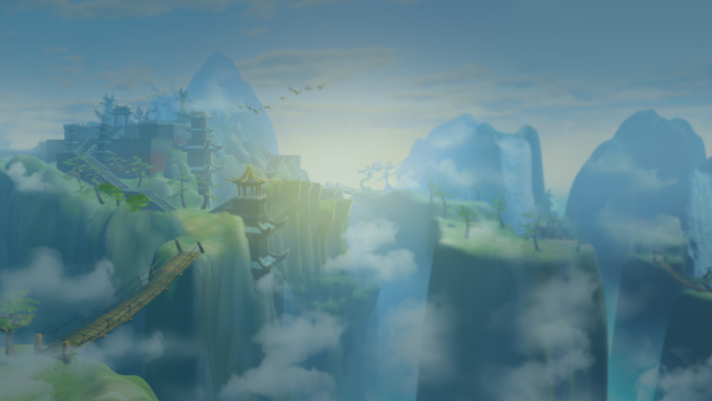 3D画面,Q版画风,清新氛围,国风场景,尽力还原出我们内心的一片仙山净土。隐逸世外的仙山,宁静祥和的村落,迷离恍惚的幻境,妖异邪诡的佛窟,幻彩斑斓的水底迷宫……