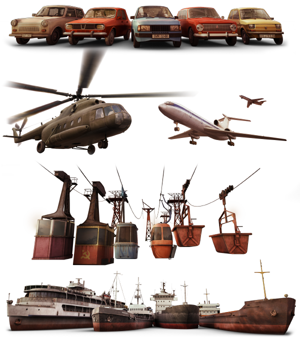 • Enjoy authentic soviet buildings and vehicles, as well as realistic landscapes of the 60's to the 90's.