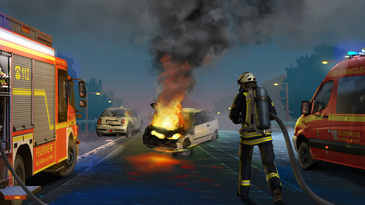 simulates the working methods of the German professional firefighters. Experience how they work, how they proceed tactically and which tools they use. You can expect a variety of tasks in the areas of rescue, extinguishing, recovery and protection.