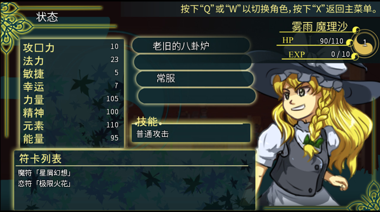玩家需要学着使用不同种类的符卡,并且输入符合顺序的按键来保证火力的输出!