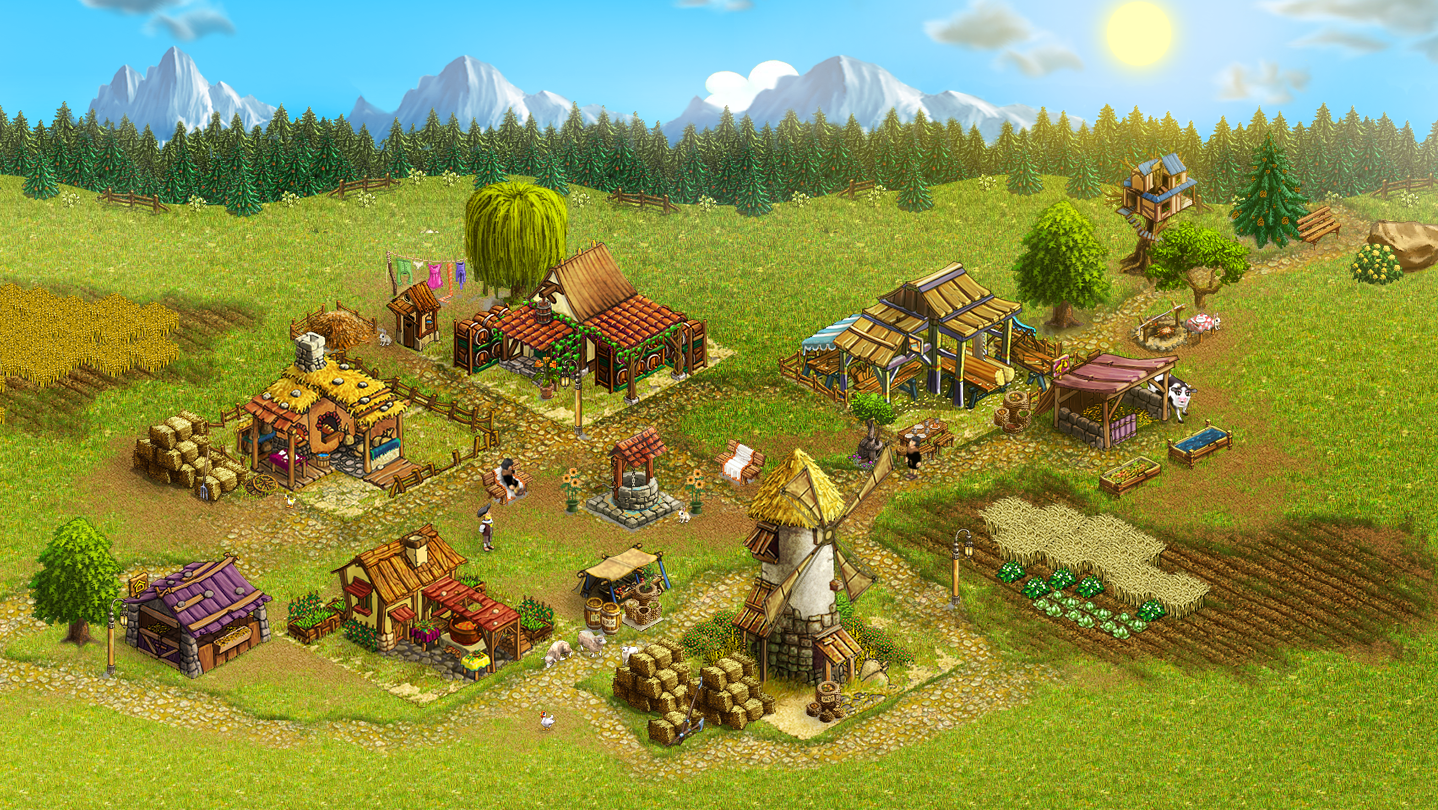 Beheer je dorp zo succesvol mogelijk om er een bruisende nederzetting van bloeiende handel van te maken. Gebruik landbouw en vee in het boerderijspel. Maak meel van graan om brood te bakken, verwerk pruimen tot sap en wijn. Breid je gebouwen uit en verfraai je dorp