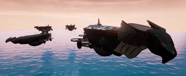 Foreseeing this tragic event, the greatest engineers built habitats with ecosystems to their liking in the form of huge, flying ships. This fleet, being able to escape the dangers of the flood, would become the peaceful home of mankind for centuries.