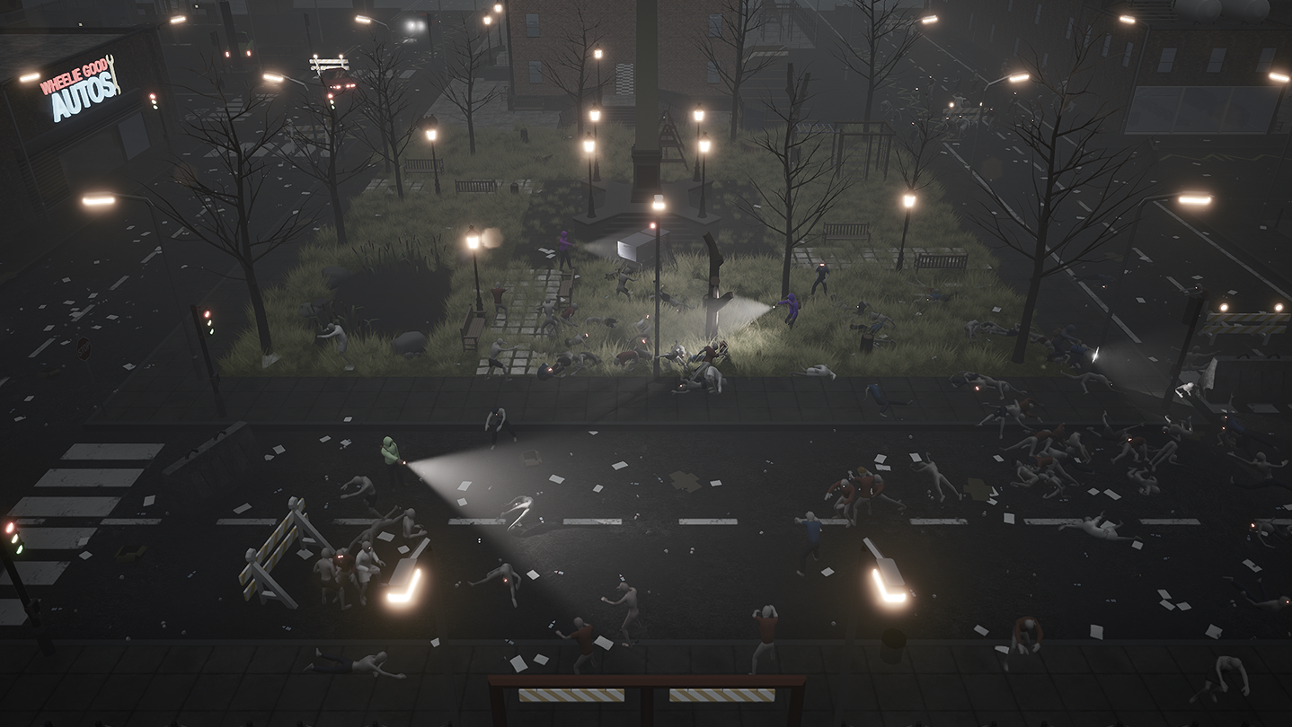 • Intricate zombie AI with line of sight, hearing and horde behaviour.