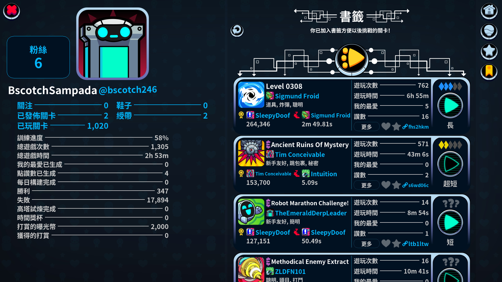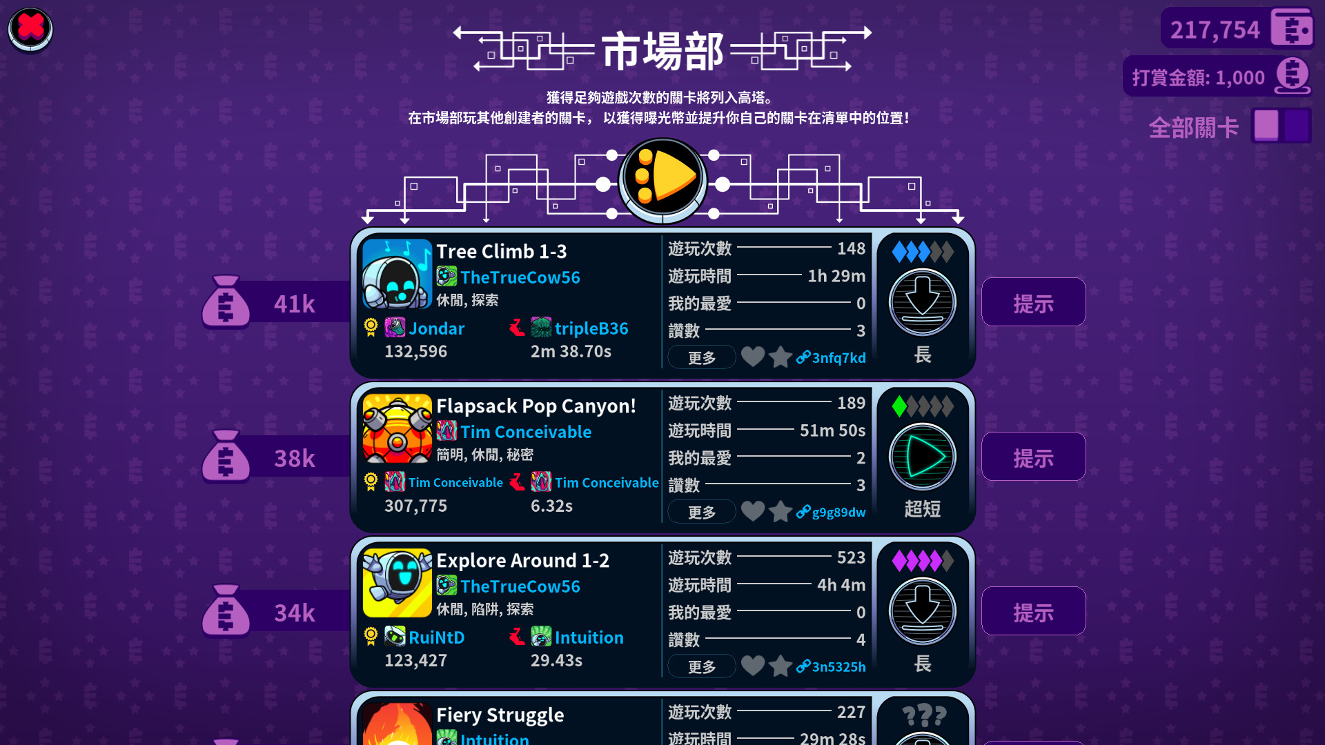• 跨平台、跨存檔、跨遊戲! 你創建的關卡會向全世界發佈,無論在什麼裝置上!你甚至可以將未完成的關卡備份到雲端,並在裝置之間輕鬆傳輸,以便隨時隨地構建和遊玩。