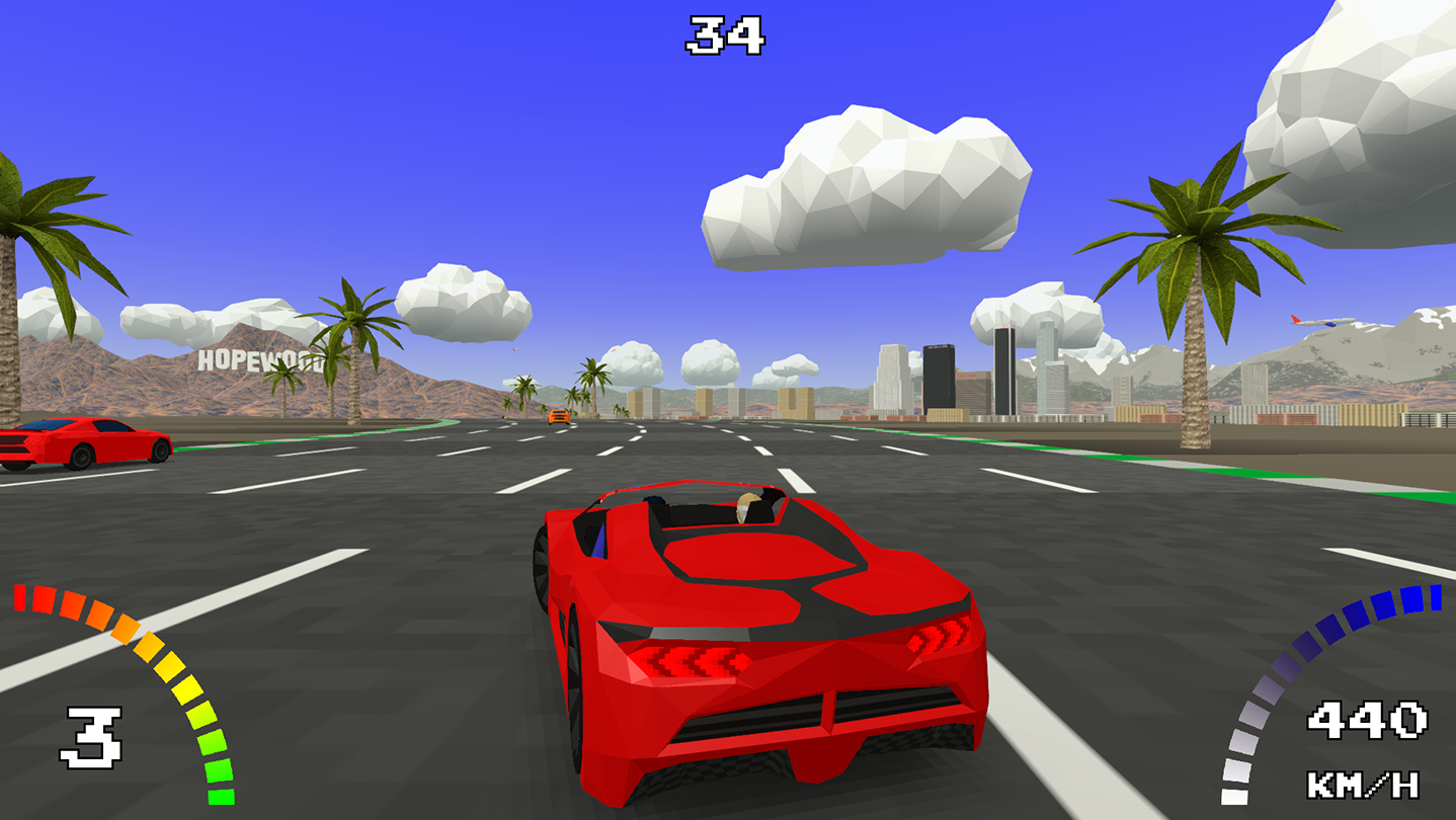 Super Green Rally features procedural gameplay, day/night cycles and changing weather. Unlike the old arcade racers, you get a different racing experience every time you play. This offers more challenges and also creates a great replay value.