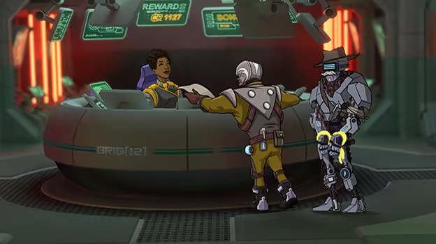 Welcome to BRIG 12, a high-security location that’s exclusively reserved for turning in the most dangerous bounties of the Altera System. It is the most elite destination for Bounty Hunters in the galaxy and, as the clone of a very successful Bounty Hunter, you’ve earned access into this exclusive club. Your job is simple: take over your predecessor’s empire, make a bunch of money, and clone yourself so you can retire. Aboard your trusty ship, you will assemble a crew, take on missions throughout the galaxy, and maybe even take some time for yourself at the club or barbershop.
