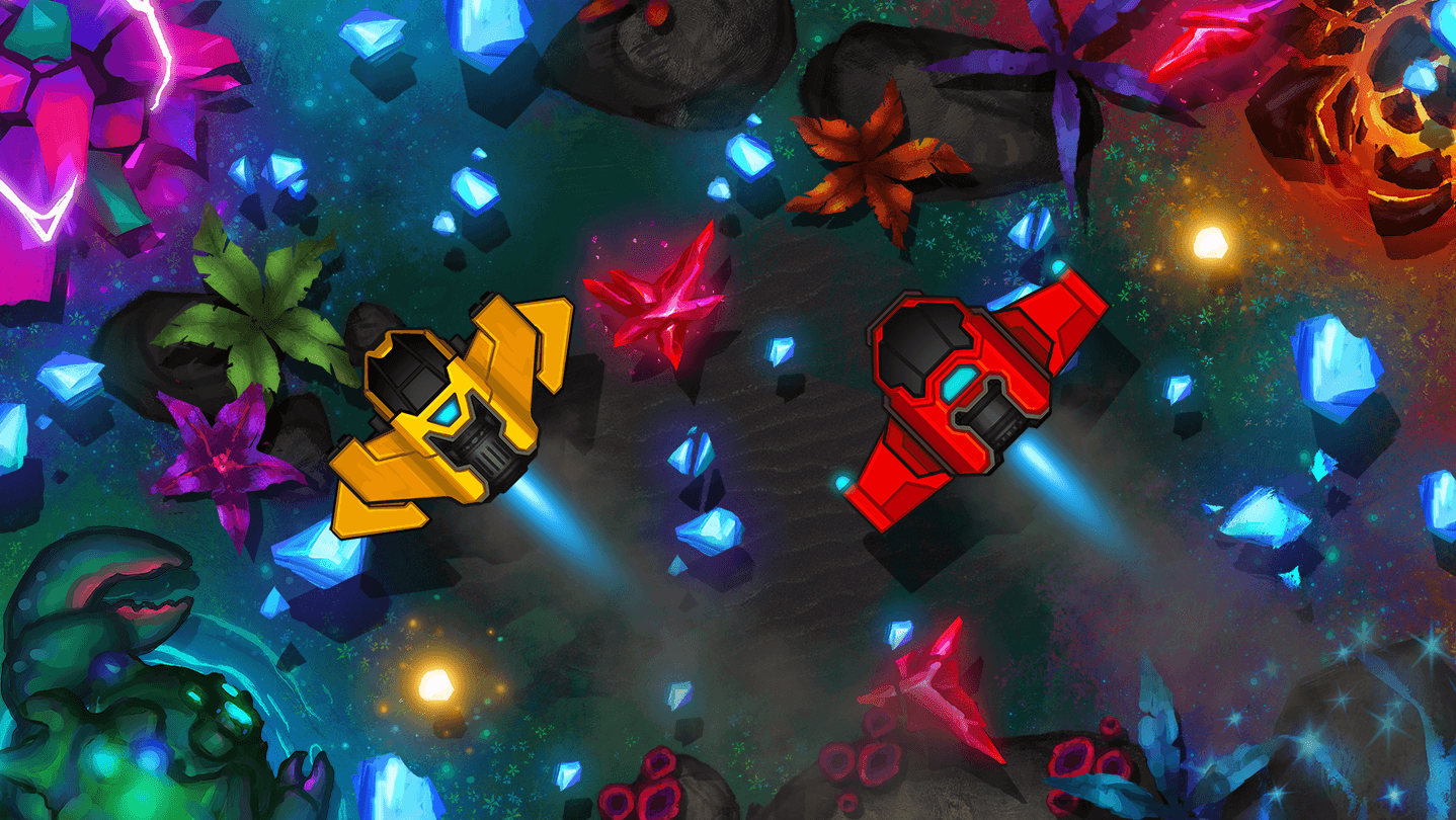 It’s dangerous to go alone into the vast desert. Dangers are at every turn, so team up with friends to take on the most dangerous and valuable of guarded mines. Or, enter your best spaceships in the competitive Team Race mode where you and others compete for the most resources in an exciting race against time.