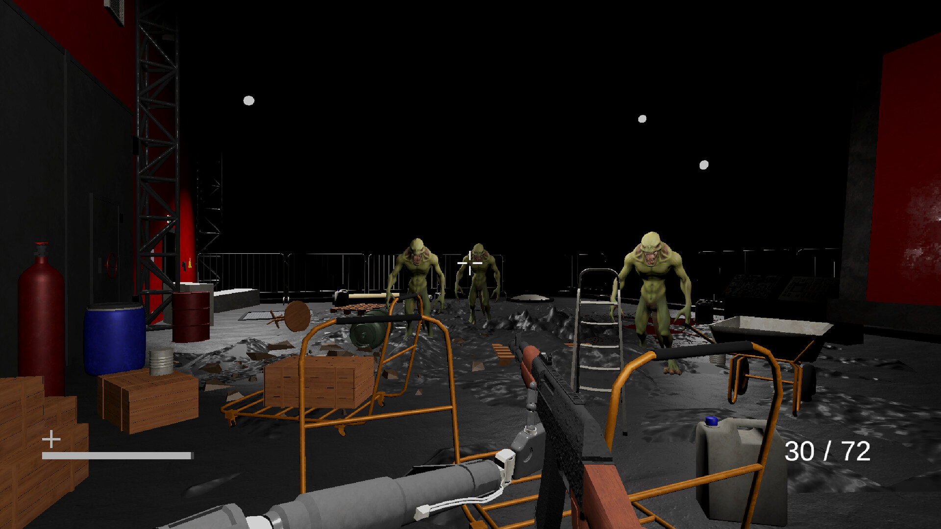 First-person horror shooter in an underground laboratory. Explore the complex, fight, collect keys and notes to unravel the secrets. Use weapons, hack terminals, and avoid traps. Take pills to maintain your sanity. The escape begins now.