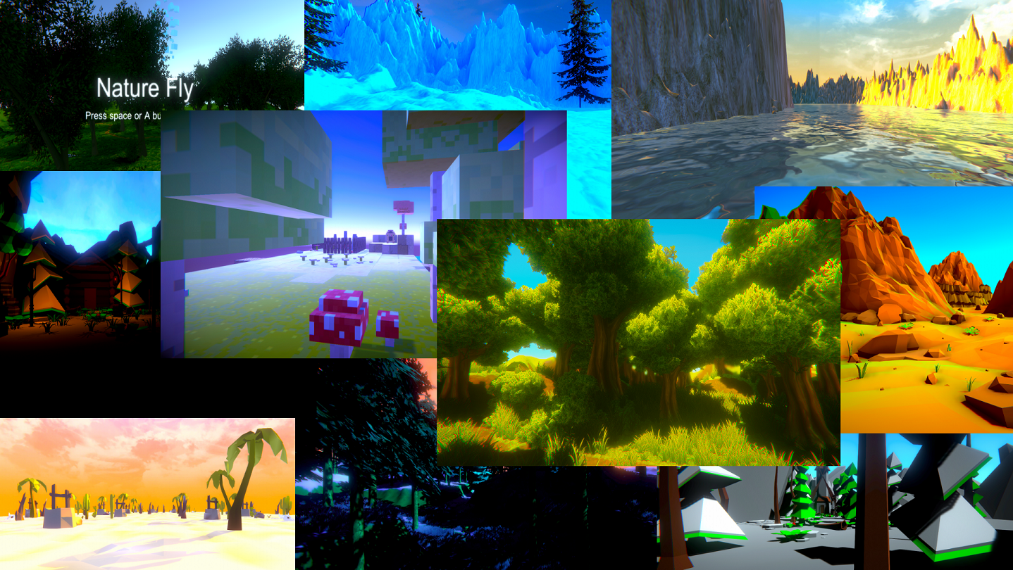 NatureFly is an virtual reality experience that let's you fly through various fantastic scenarios. It contains 12 different wonderfull forest, lake, desert and canyon scenarios that you can explore. There is also the open world mode where you can fly around as you want.