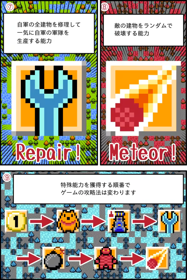 • 特殊能力を獲得する順番で、ゲームの攻略法は変わります。