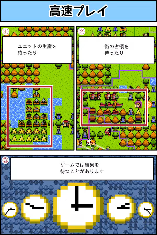 • ユニットの生産を待ったり、街の占領を待ったり、ゲームでは結果を待つことがあります。