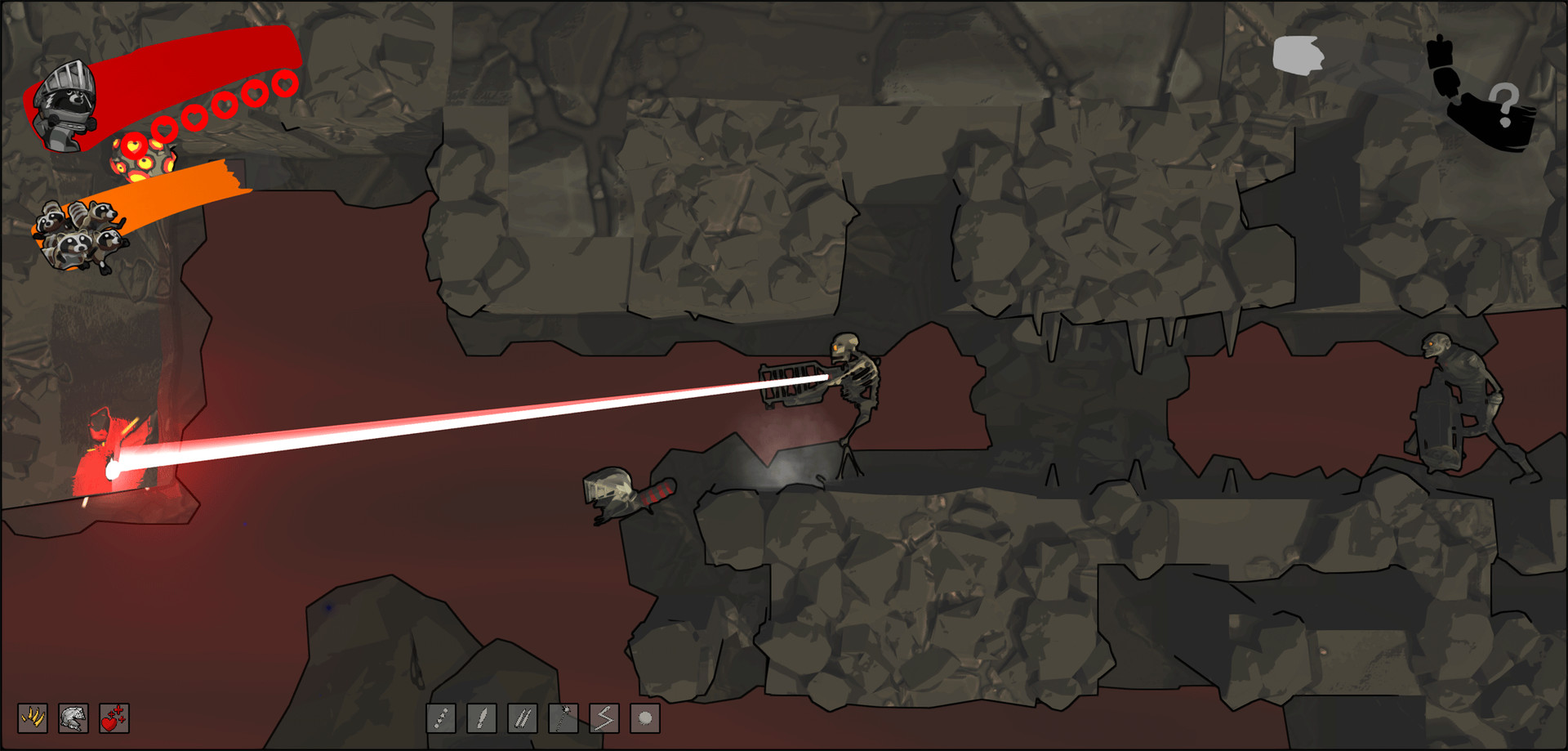 How many raccoons does it take to fire a cannon? What is the maximum transport range of a trash can? Answer these important questions in Animosity: a procedurally-generated platformer that takes you from the fires of revolution to the edge of space. You play as a special red-tailed raccoon who must liberate the species from the angry ape menace. Join together to fight tooth and nail, bolt and bullet against those who want you dead.