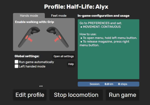 NOTE: Natural Locomotion doesn't provide comfort options by itself (FoV reduction, etc), that's dependent on each game. If you need it, make sure the games you want to play have the feature and is enabled.