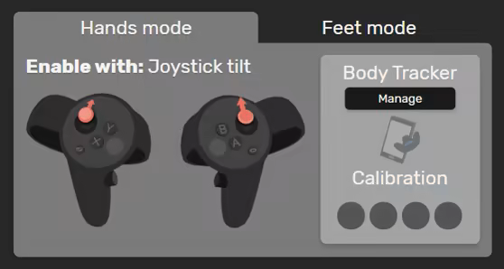 • Hands mode is now compatible with body trackers (Smartphones and trackers). Using a body tracker, the direction of the movement depends on where your hip is oriented which could make this locomotion method even more immersive and comfortable.