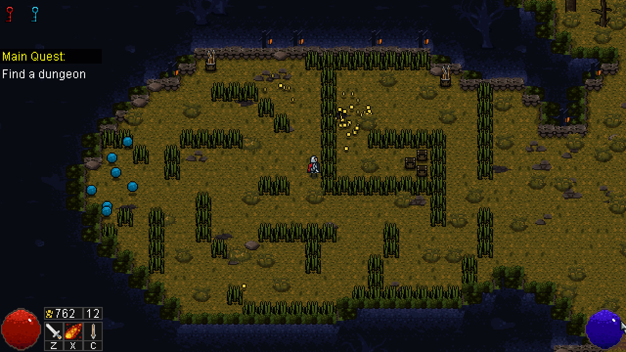 The game is set in a dark pixel fantasy world. Destroy hordes of monsters ruling over what once was a prosperous land. 10 levels filled with various enemies await, you, each requiring a different approach to defeat. Like in any RPG, leveling up is the core element of the game
