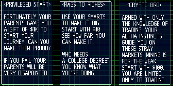 • Procedurally generated cryptocurrencies with simulated market trends.