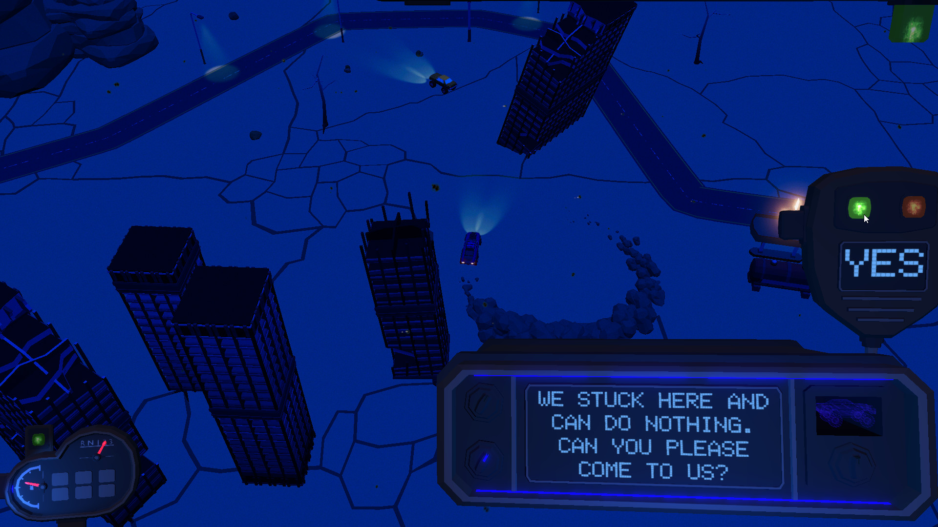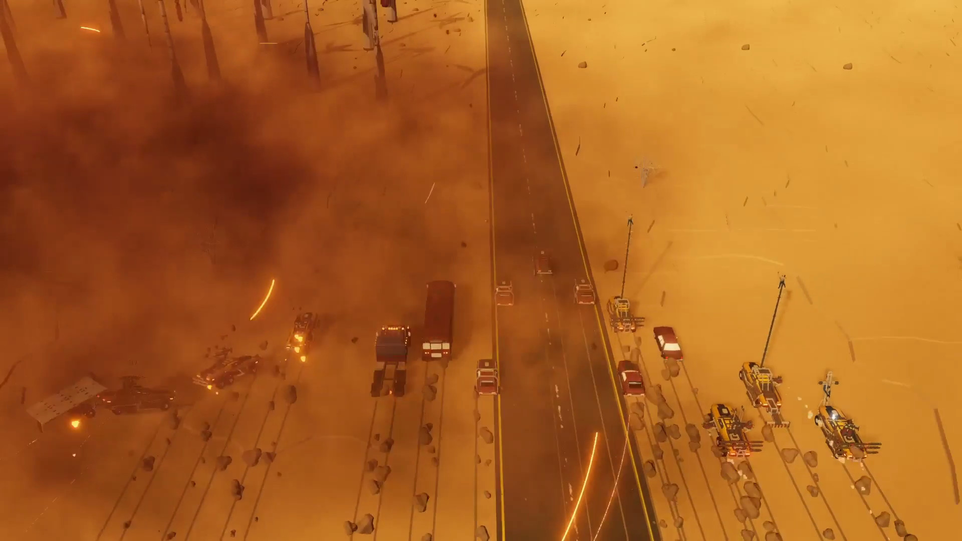 The core of the game is mass car battles, where each car could be modified with various improvements, such as flamethrowers, raws, shields, boarding or kamikaze devices, etc. You can either destroy an enemy group or just leave them behind, if all of your cars are fast enough. These battles take place on procedurally-generated wasteland roads, filled with obstacles suitable for landscapes where a battle has been started on the global map.