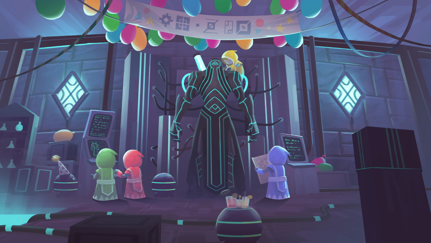 NoReload Heroes is a chaotic co-op party shooter for up to four people. Work as a team to beat the accidental evil you created, and be sure to pick up the best magitech guns on the way, or it's back to the bottom floor with you!