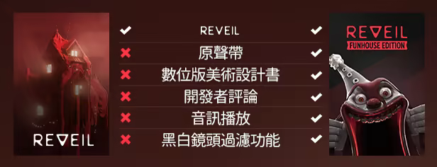 《REVEIL》是一款敘事性第一人稱心理驚悚遊戲,著重於故事劇情、解謎與探索。一探沃爾特.湯姆森內心的真相,看看他在尼爾森兄弟馬戲團的黑暗過往與這件事情有什麼樣的關聯。