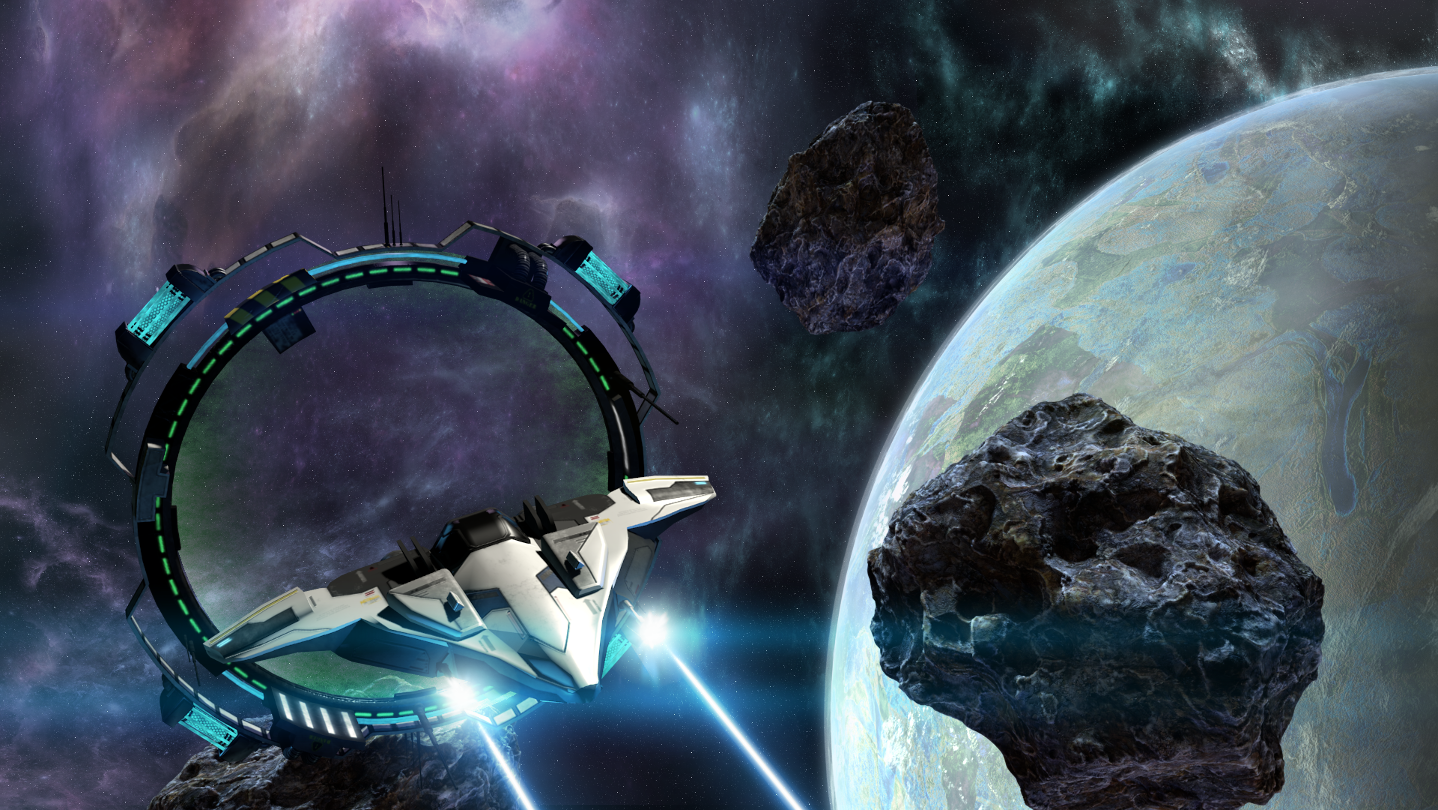 Hypergate has no grinding, resource balancing, or asteroid mining. In as little as three mouse clicks, you can begin a mission and start earning points by scoring kills against enemies. Flight style is non-Newtonian. Dual HOTAS is (currently) not supported.