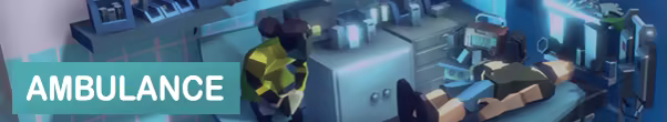 You are the ambulance – Look after your patients in the medical station of your HQ and expand it with the latest technologies from radiology stations to 3D printers. It’s your responsibility to keep all your patients safe and provide your medic team with the needed items from crash cart to contamination suits and medical kits.