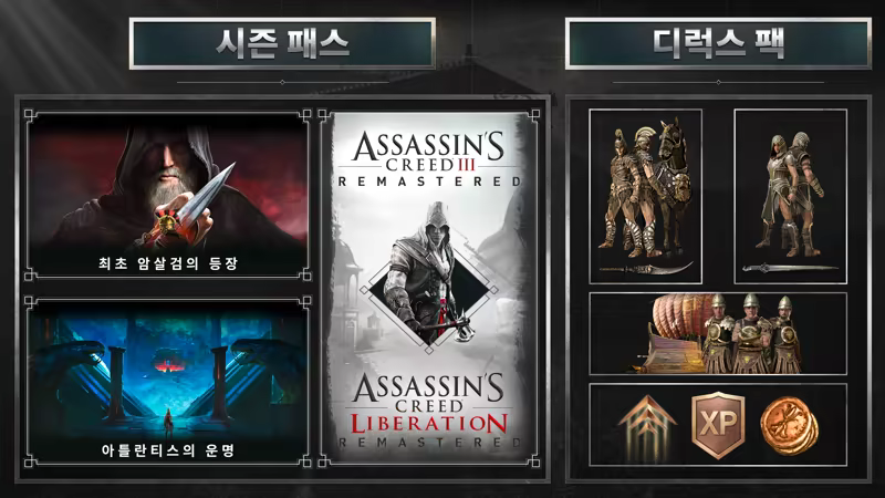 - 시즌 패스: 확장팩 2개, 임무 1개, 어쌔신 크리드 3, 어쌔신 크리드 리버레이션 리마스터