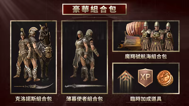 - 豪華組合包:2 個裝備組合包、1 個航海組合包和暫時加成道具