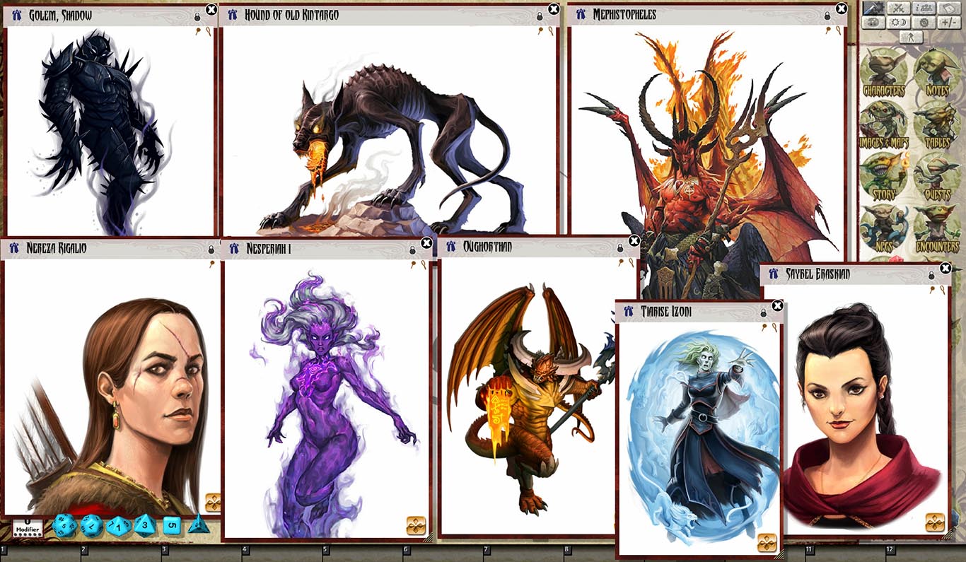 • Tokens for each encounter are all pre-placed in starting locations on the map. You can edit these on the fly.