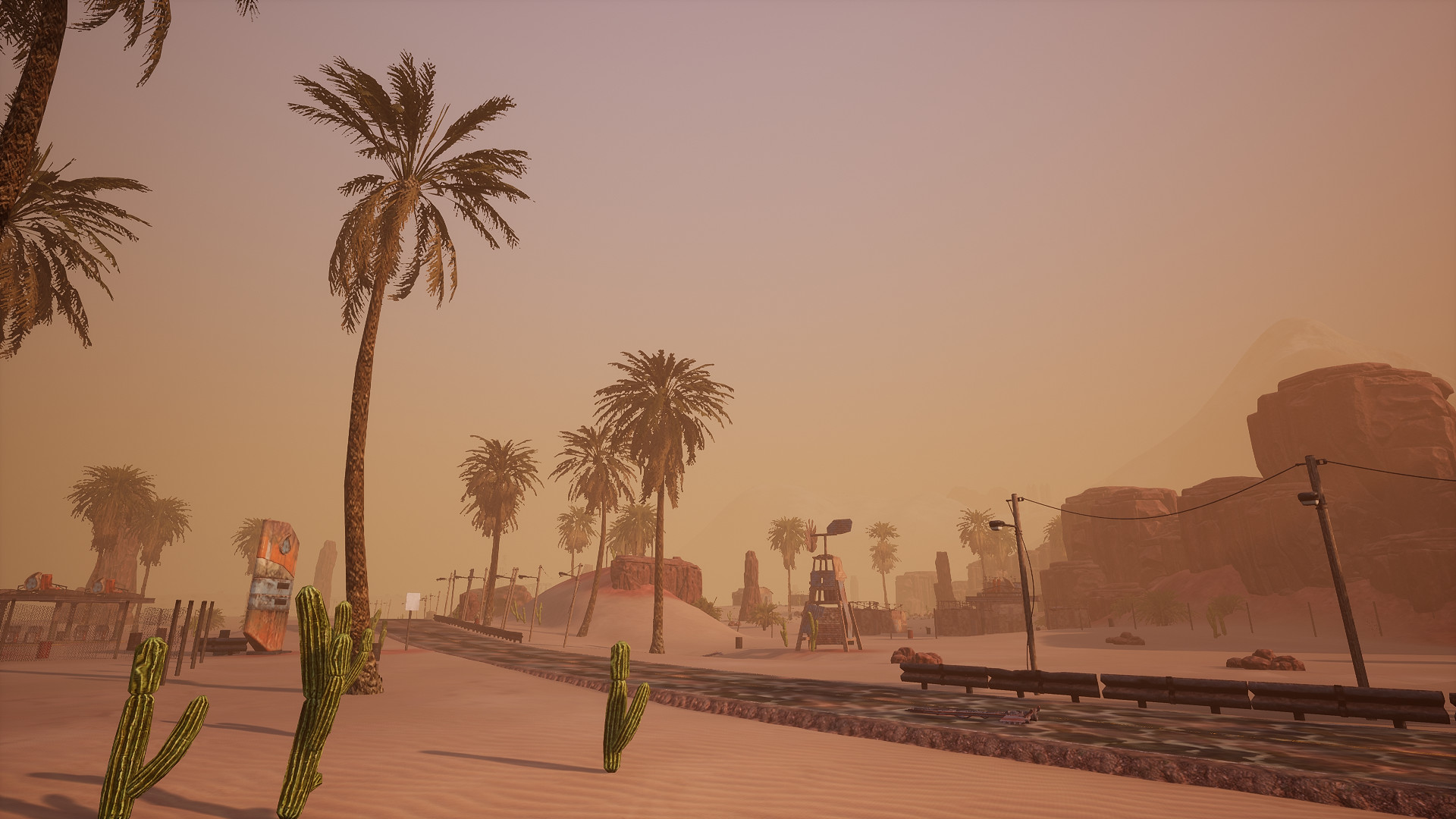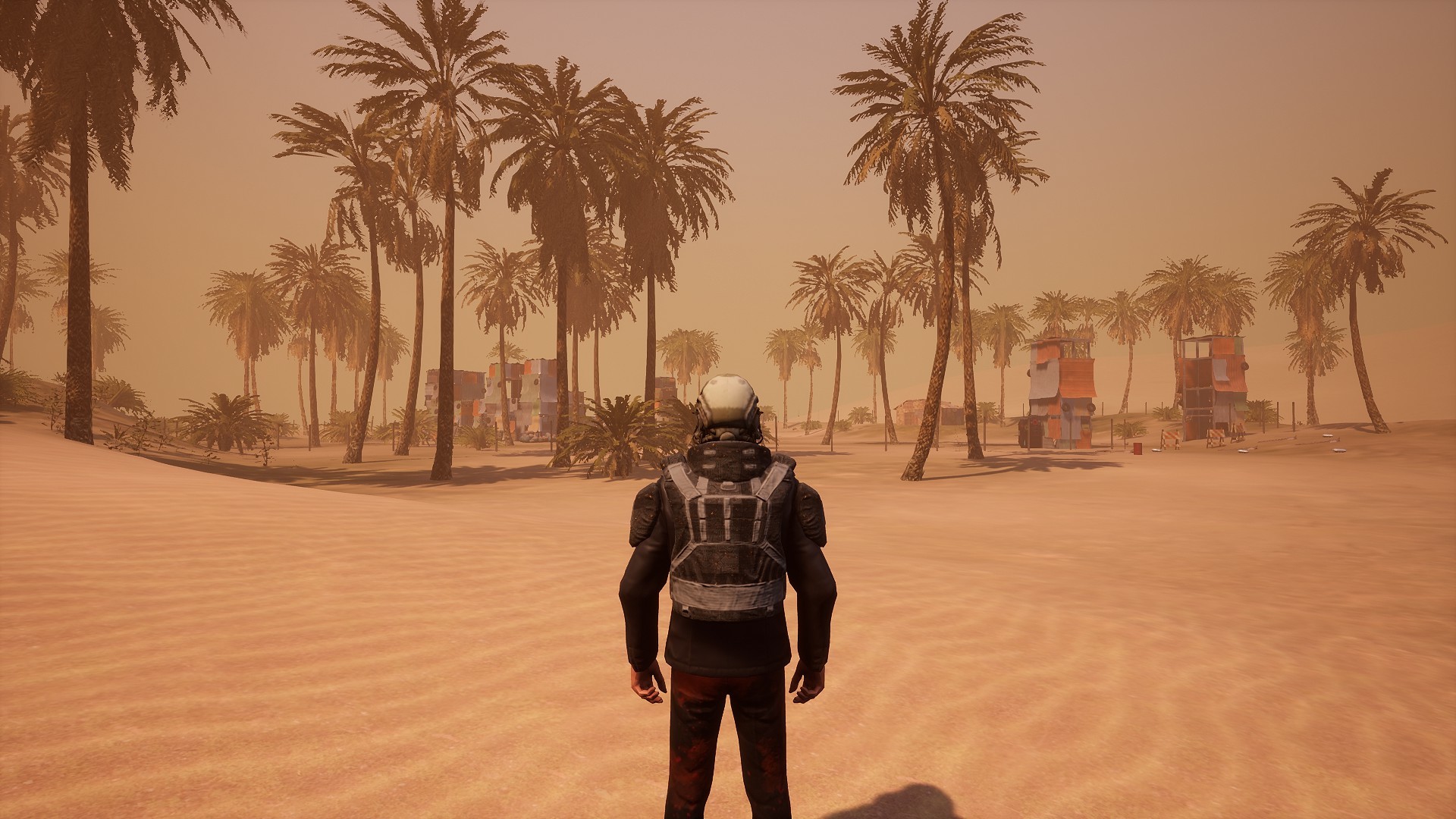 The island consists of a vast desert area measuring 8x8 km (64km2). On the island you can find many resources: trees, stones, uranium, sulfur, metal and others. Each tree can be cut down, and each stone can be split. Traveling around the island you will meet settlements on which valuable things are located. There are also two safe areas on the island where you can sell your goods to a merchant or buy something new. In addition to players, you will meet hostile bots, such as spiders, scorpions, robots.