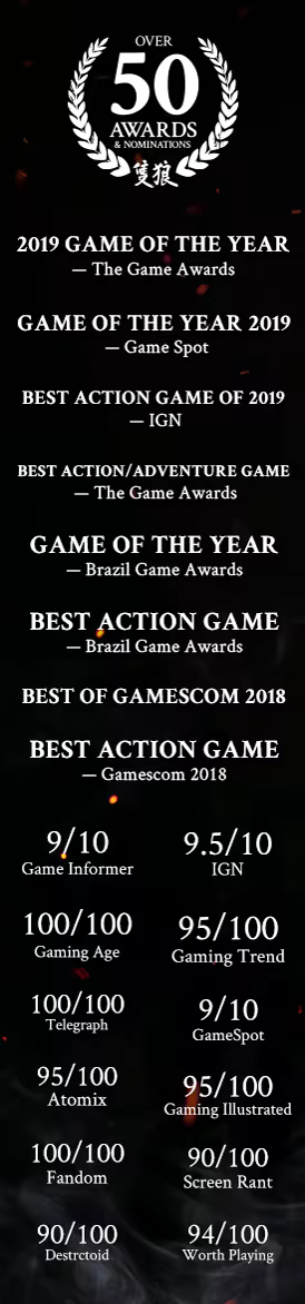 Carve your own clever path to vengeance in the critically acclaimed adventure from developer FromSoftware, creators of the Dark Souls series.
