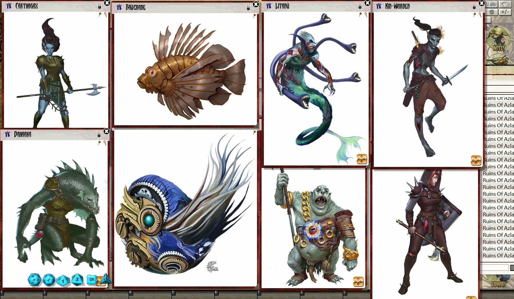 • Tokens for each encounter are all pre-placed in starting locations on the map. You can edit these on the fly.